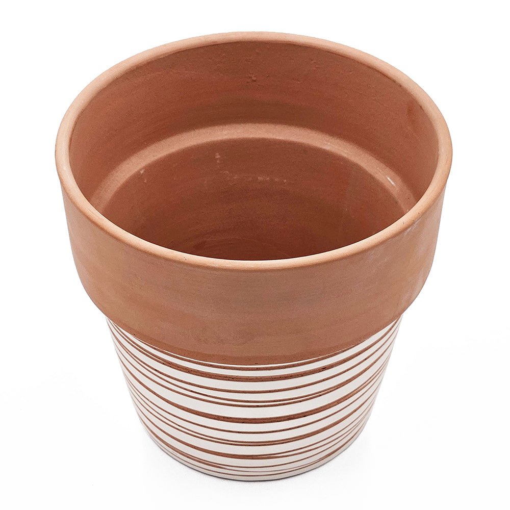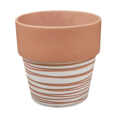 Nothing showcases the color of your plants better than a classic terracotta planter. Crafted from 99% clay, this small round pot boasts that iconic terracotta color enhanced by a white swirl design, adding texture and charm. The wide lip at the top of the planter keeps the swirl detail from becoming overpowering.