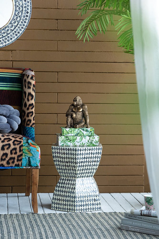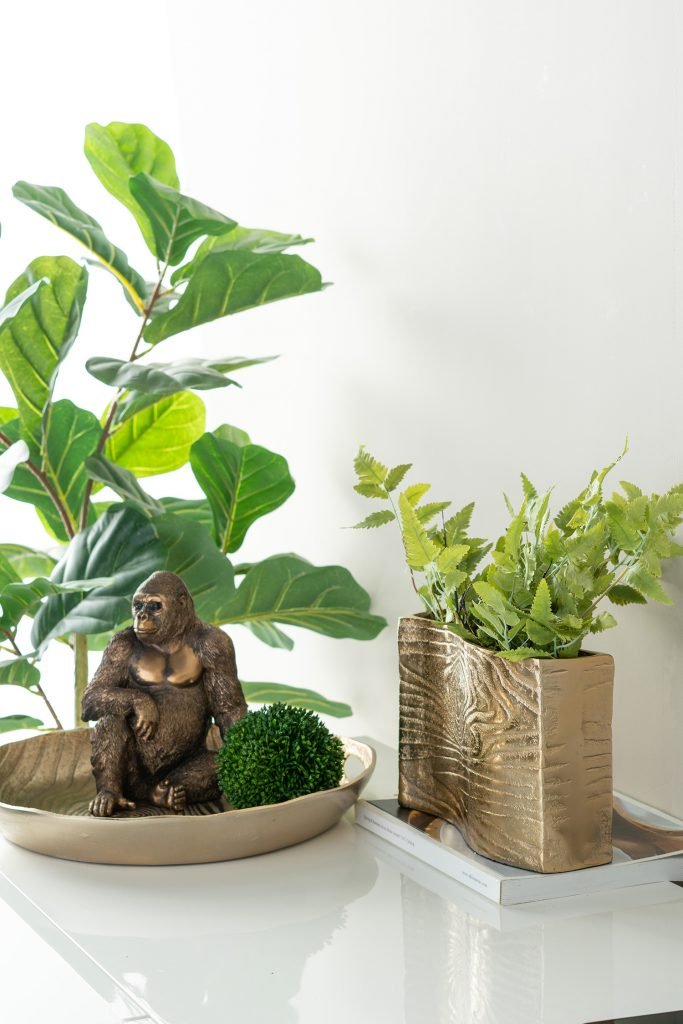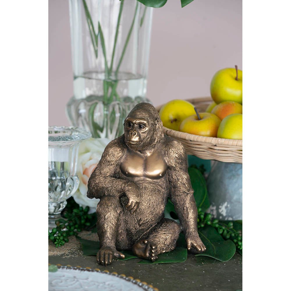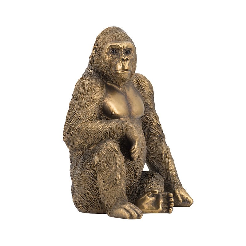 Featuring a copper finish that shows off its intricate details, this gorilla statuette is perfect for accessorizing a table or shelf. It will make an unexpected, modern accent for any room and is easy to complement with contemporary decor. Place it on a console, side table, or a shelf to show off your style.