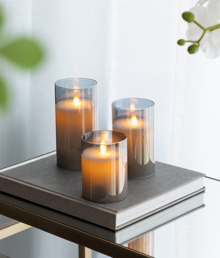 Set of 3 Grey Real Flame-Effect LED Wax Candle 4", 5", 6"