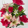 Don't miss out on the opportunity to bring home this stunning floral mix. Order now and let the beauty of roses, zinnias, and lilies inspire joy and elegance in your surroundings!