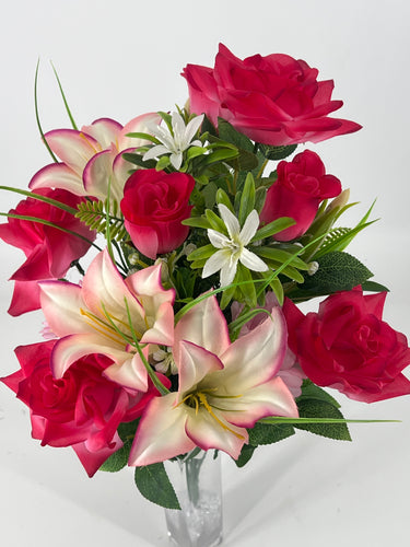 Rose/Zinnia/Lily Mixed Bush Pink 23”