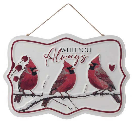 Metal Cardinal "With You Always" Hanging Sign 11.75"H x 8"W