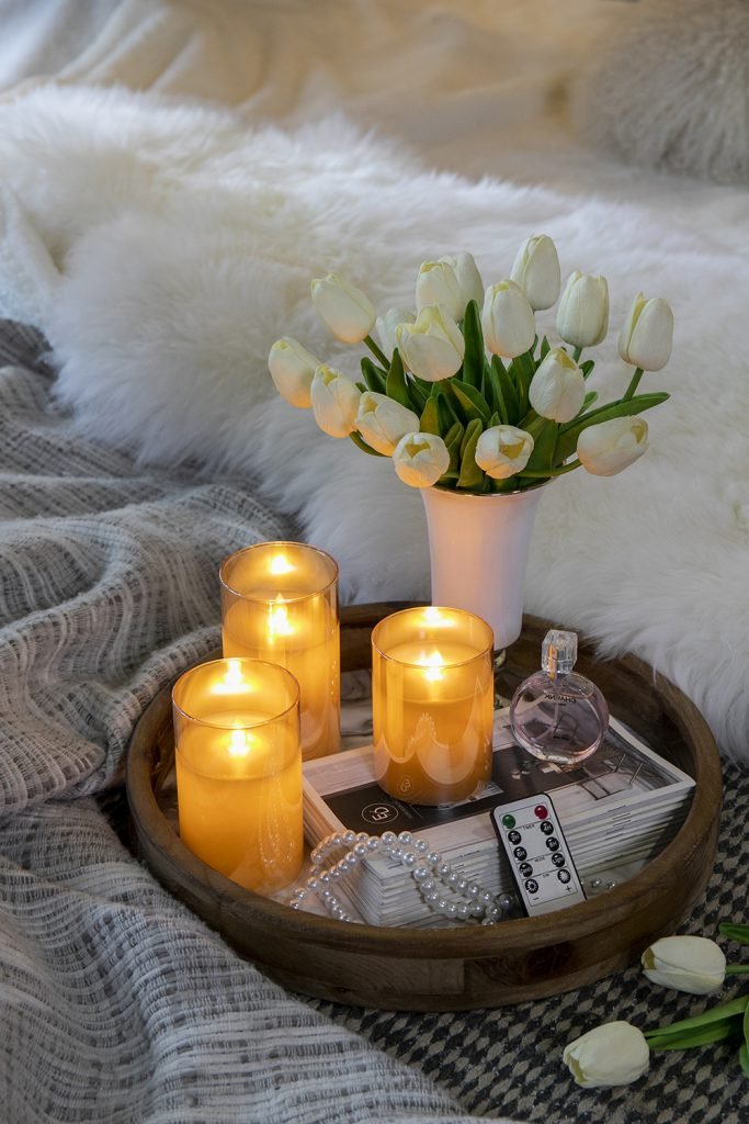 Crafted from genuine wax, this set of three flameless LED candles mimics the warm, flickering glow of the real thing without the risk of fire hazards. Housed in sleek amber glass, they bring a cozy, modern vibe to any mantel, tabletop, or dresser. A remote control is included, allowing you to adjust the brightness, set a timer, or power them on and off from the comfort of your couch.
