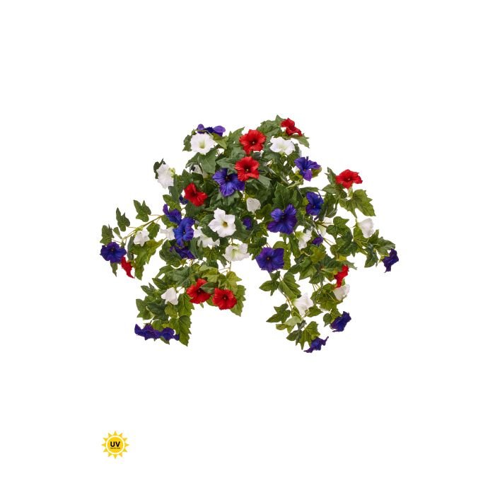 UV Petunia Hanging Bush Red-White-Blue 26"
